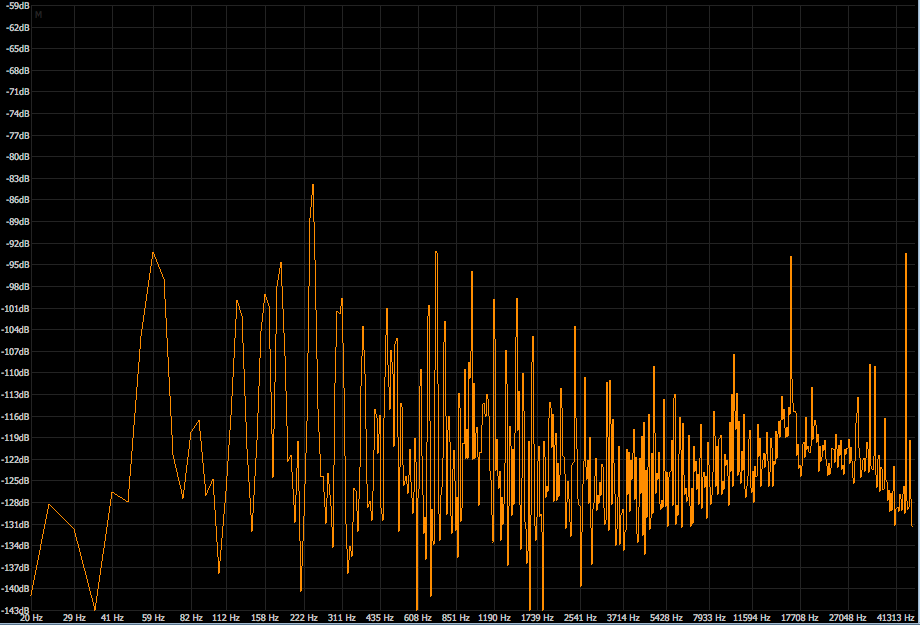 That is a huge difference in noise, with peaks going from -96 dB to -70 dB. Let’s call that 1970s recording fidelity, if that. Unfortunately there is no way to detect these issues except by meticulously testing every module in your system. For every attenuator, mixer channel, VCA, VCF or DSP output that can be nulled to zero input, feed it to your DAW and check the noise per module. For a device as noisy as these there are two options, remove it from your system, or get a quieter power distribution system.