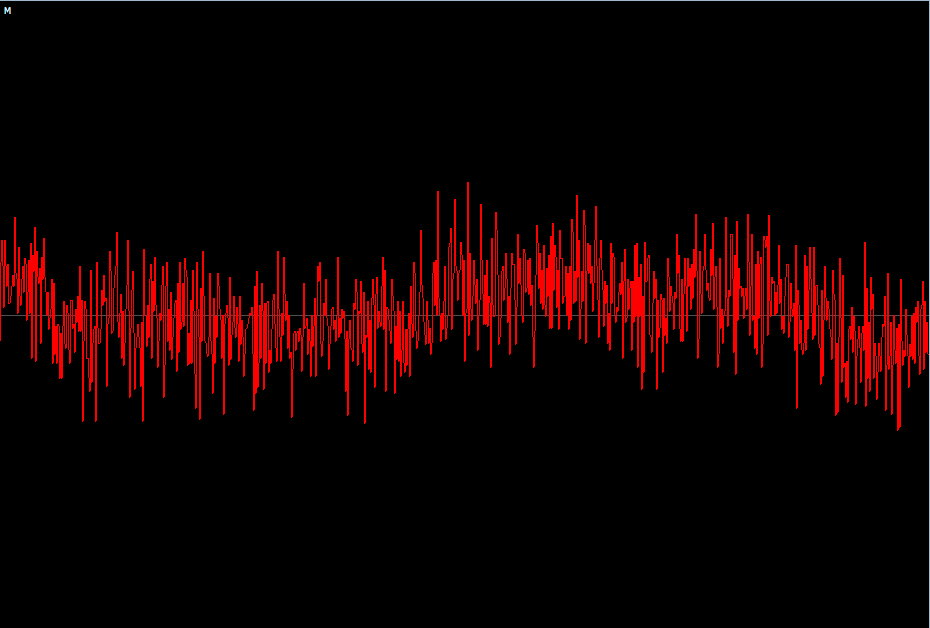 The next experiment takes the 1 ounce copper bus board with the noisy DC offset/attenuverter and puts it through a wavefolder at maximum gain. Here is the result with peaks to -45 dB. While it may seem like a good sound source for a Noise composition, you don’t want this stuff in mixes where nuance and clarity are part of your music. Once this is in your mix, you can’t simply noise print it out in your DAW because it varies with every modulation, processor, mix level or VCA change. For waveshapers a common practice is to put the waveform through a VCA prior to the waveshaper, so that timbral shifts occur with input amplitude. If there is no filtering or VCA stage following the waveshaper, then the amplified noise carries all the way to the audio outputs.